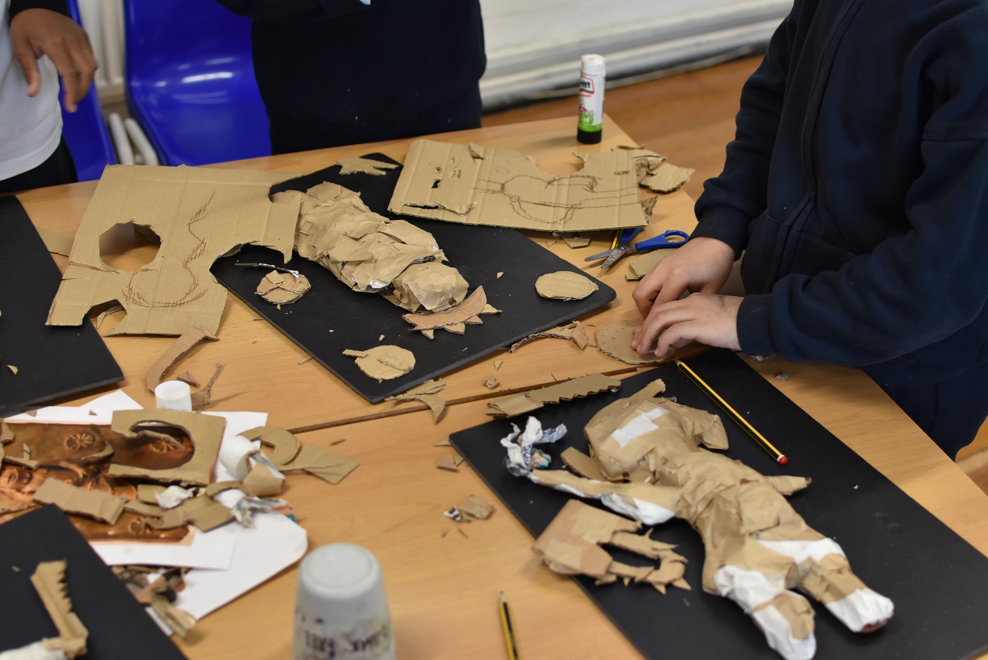 Both Year 6 classes, Iroko and Jacaranda, took part in a unique two-day art project last week, exploring the history and artistic traditions of the Benin Bronzes. Building on their earlier learning in humanities, pupils created their own artworks inspired by the rich heritage of the Benin Kingdom.